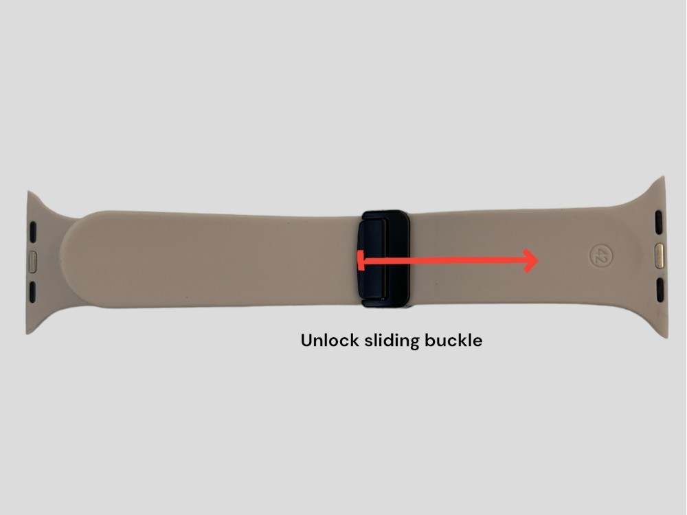 Once the buckle is opened, you can move the buckle up or down the Apple Watch band to lengthen or shorten it depending on your wrist size. Once you find the perfect size, simply close the adjustment flap to lock it back into place.