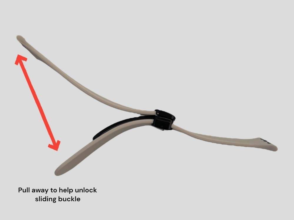 The adjustment flap is meant to be very sturdy as to not come apart. If you have trouble opening it, then you can pull the two bands away from each other as shown in the image. This will easily open the adjustment flap.