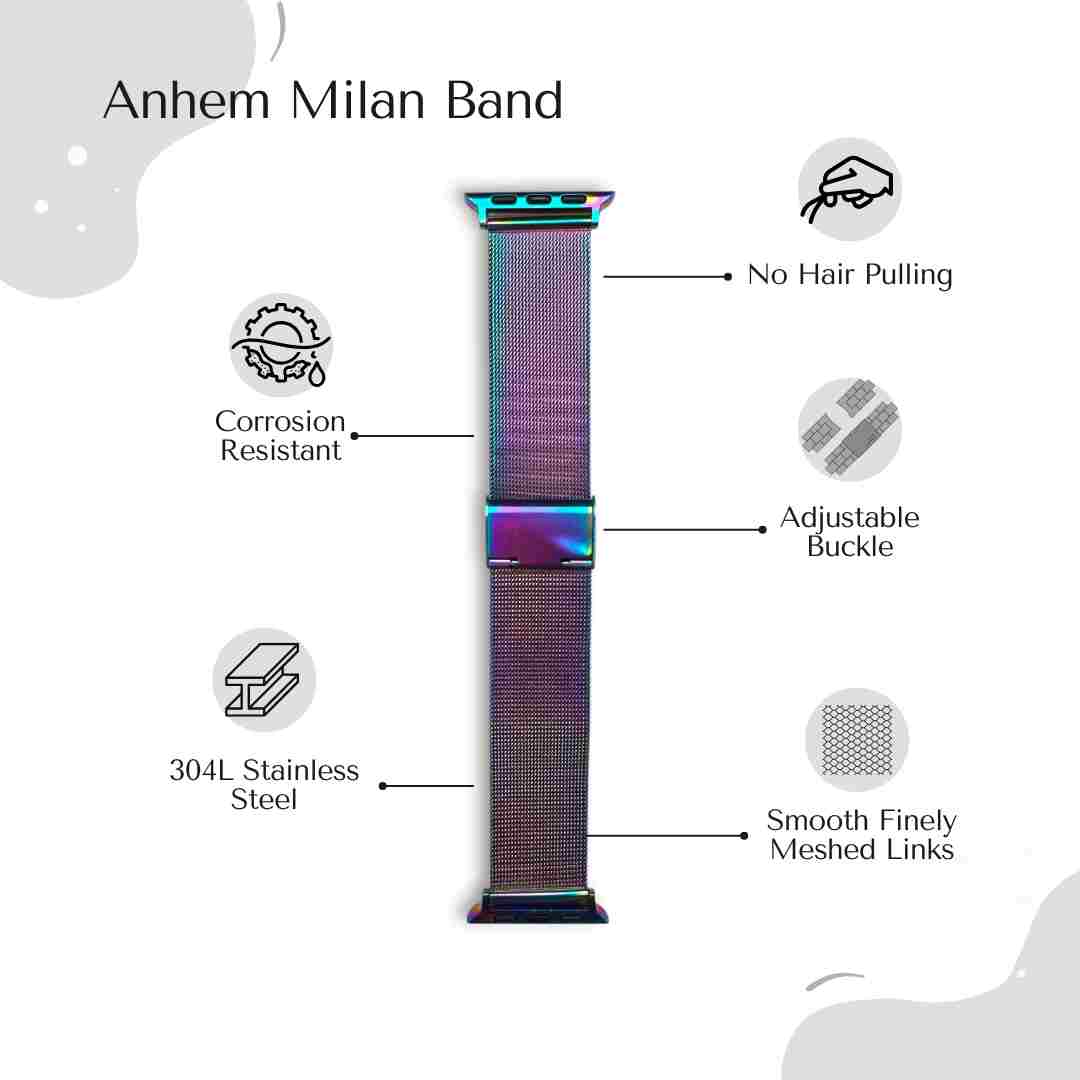 These Anhem Milan Steel Apple Watch straps are expertly crafted from finely linked stainless steel for a smooth, refined look that’s both modern and timeless. Designed with an adjustable buckle, the Milanese mesh offers a perfect fit that’s easy to adjust just once to ensure a secure, snug feel throughout the day. Unlike traditional magnetic buckles, which can sometimes slip or shift, the Milanese buckle loop design provides a more reliable and stable closure, meaning you won’t have to worry about the band loosening or slipping off as you go about your day.
