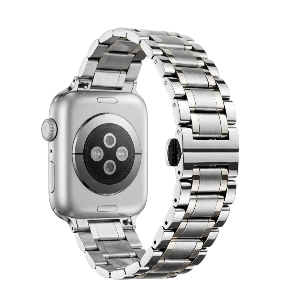 A steel strap combining a luminous, mirror-like polish with refined brushed accents.